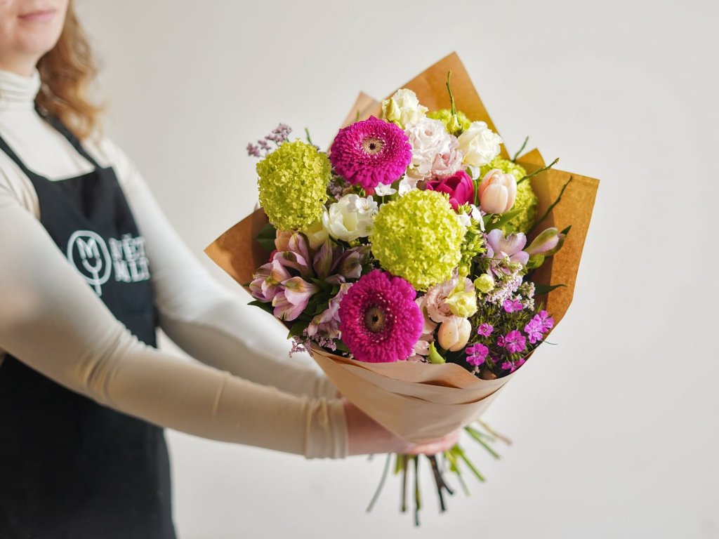 Kytici vážeme ručně v našem květinářství z čerstvých a kvalitních květin od ověřených dodavatelů i z vlastních zdrojů v sezóně. Každý kus je originál a může se mírně lišit podle aktuální dostupnosti jednotlivých druhů, vždy však zachovává jarní charakter a růžovou barevnou náladu.